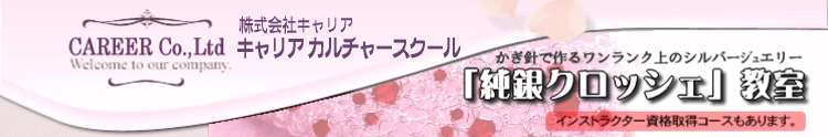 松山市のキャリアカルチャースクール「純銀クロッシェ教室」(TEL089-913-1110)は、体験・趣味・資格・出張講座あり。材料・作品も低価格で提供。